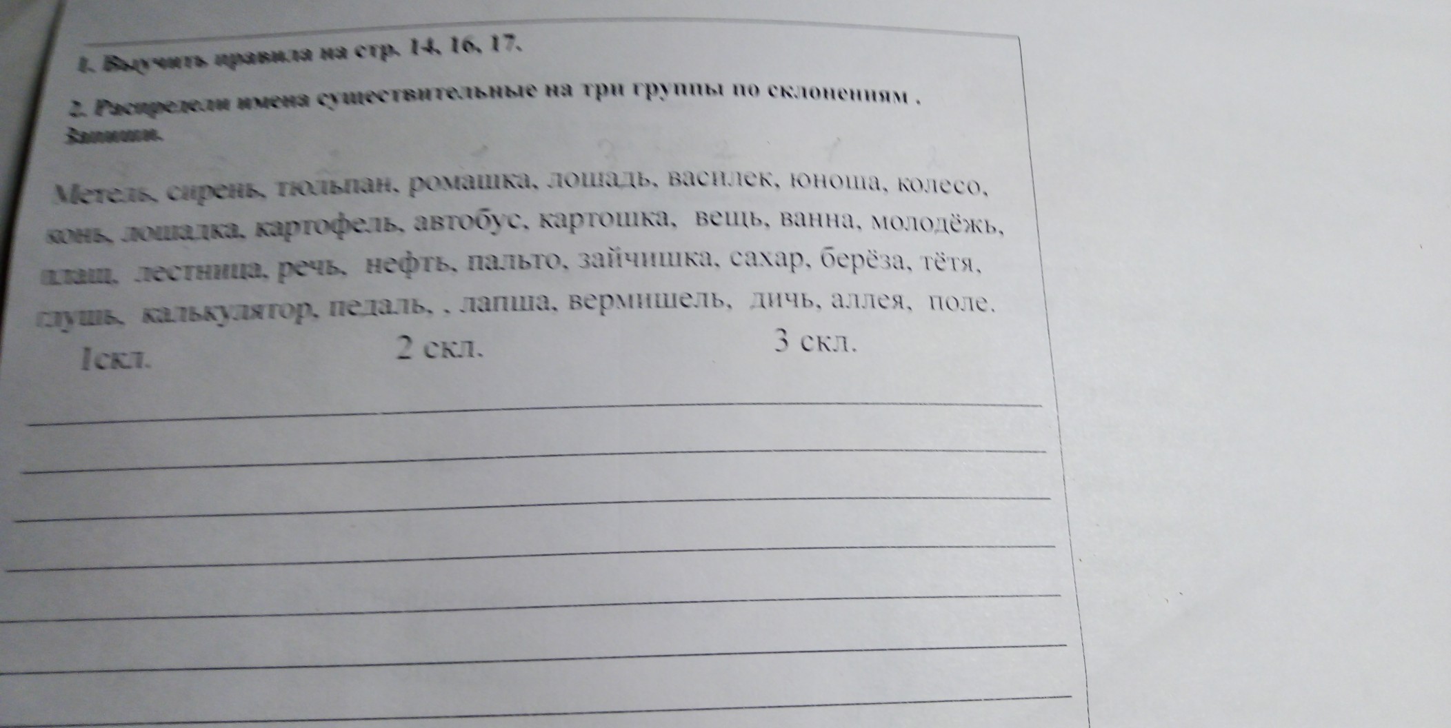 2 скл.- Тюльпан, василёк, колесо, конь, картофель, автобус, плащ, пальто, сахар, калькулятор, поле.