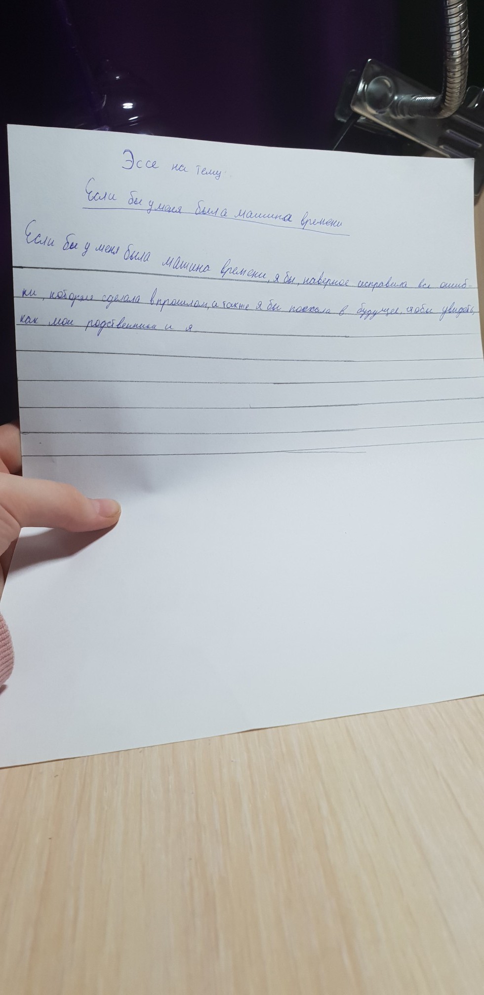 Если бы у меня машина времени я бы поехала прошлое. Исправила бы все свои ошибки,вернула бы наши умершие герои, особенно школьные ошибки. Где получила двойку исправила бы все на пятерку. Вот что я сделала если бы у меня было машина времени.