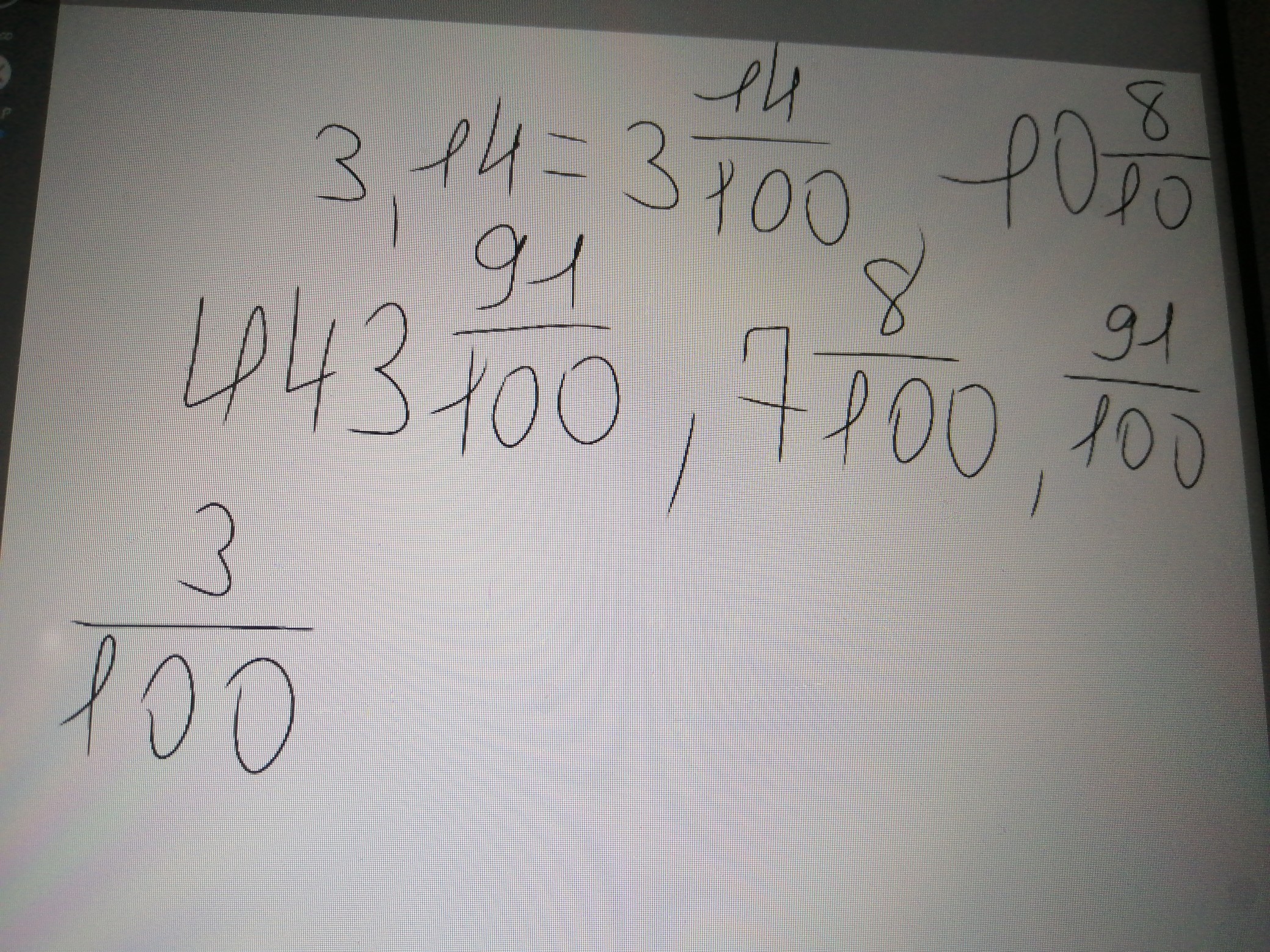Пожалуйста помогитеее. ОБРАТИТЕ В ОБЫКНОВЕННУЮ ДРОБЬ ИЛИ СМЕШАННОЕ ЧИСЛО. 3,14. 10,8. 443,91. 7,008. 0,91. 0,03