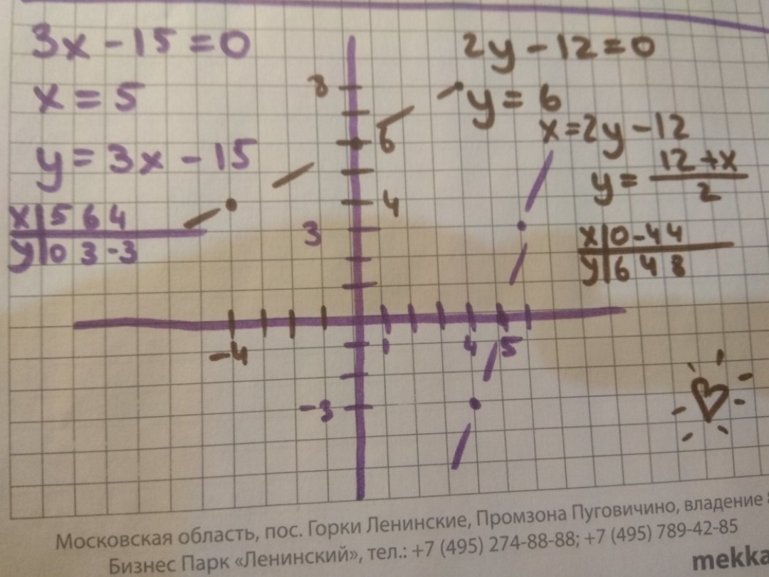 Постройте в одной системе ординат следующие прямые: 3х - 15 =0, 2у - 12 = 0