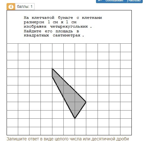 Геометрия. На клетчатой бумаге с клетками размером 1x1 изображен четырехугольник. Вычислите его площадь. Ответ дайте в кв сантметрах