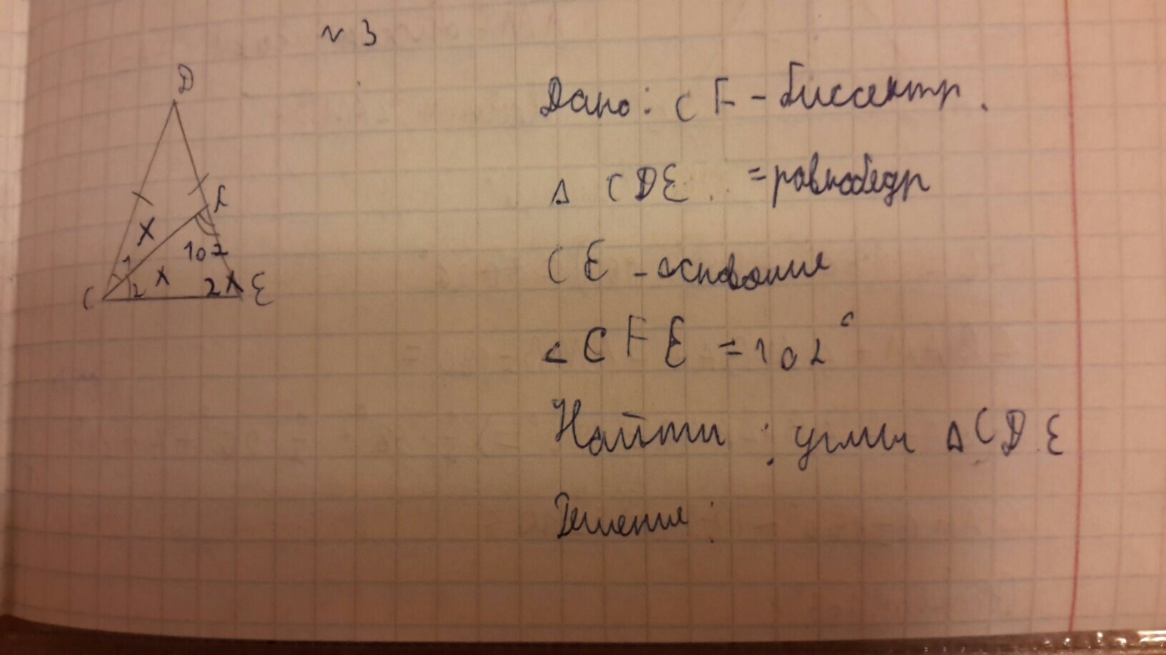 Пусть х - угол 1, тогда Е=2х (на основании р/б треугольника СDE)