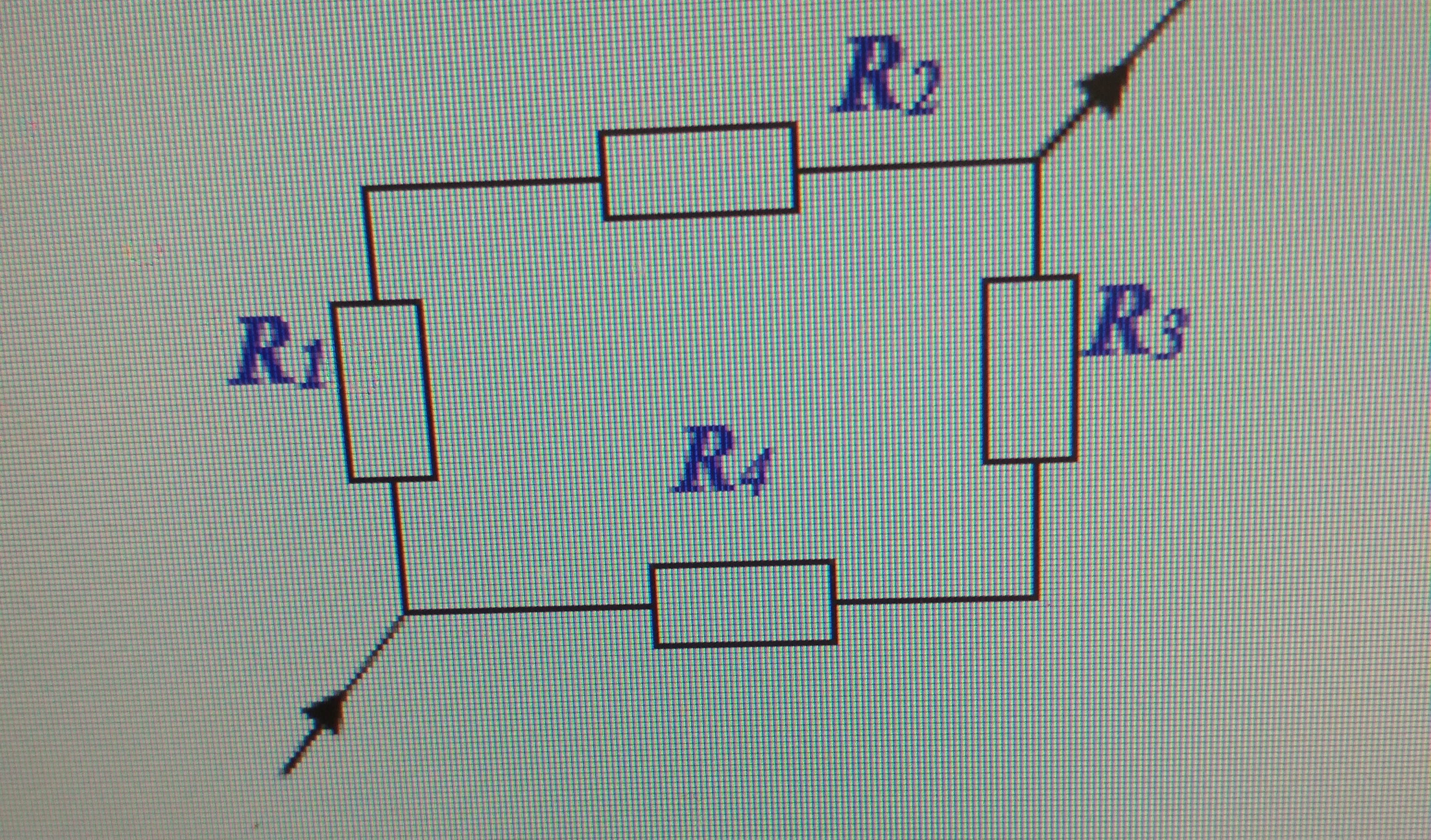 Вычислите сопротивление участка цепи, в котором R1=1 ом, R2=2ом, R3=3ом, R4=4ом