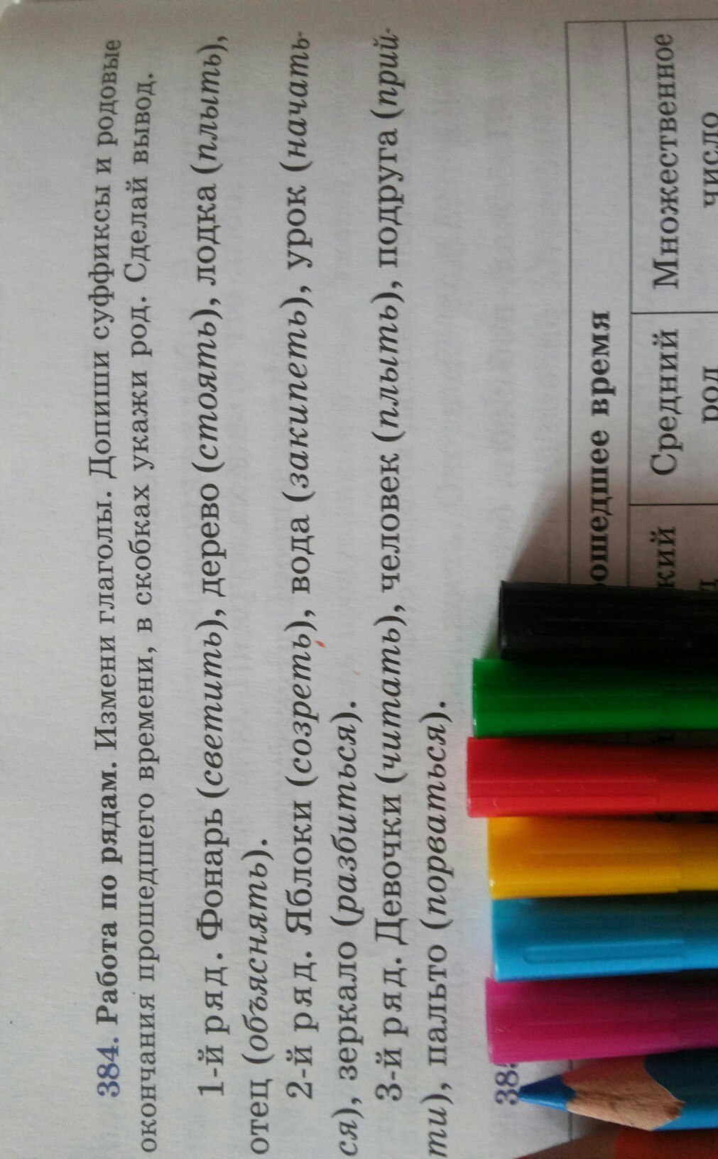 1-ый ряд. Фонарь светил (м.р), дерево стояло (ср.р), лодка плыла (ж.р), отец объяснял (м.р).