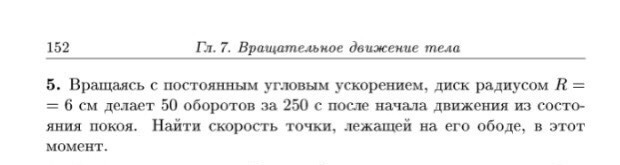 Равноускоренное вращение ф(t)=eps*t²/2= eps*250²/2=100π, eps=2*100*3.14/250²= 0.01 рад/с², w(250)=eps*t=0.01*250=2.5рад/с, V(250)=wR=2.5*0.06=0.15 м/с