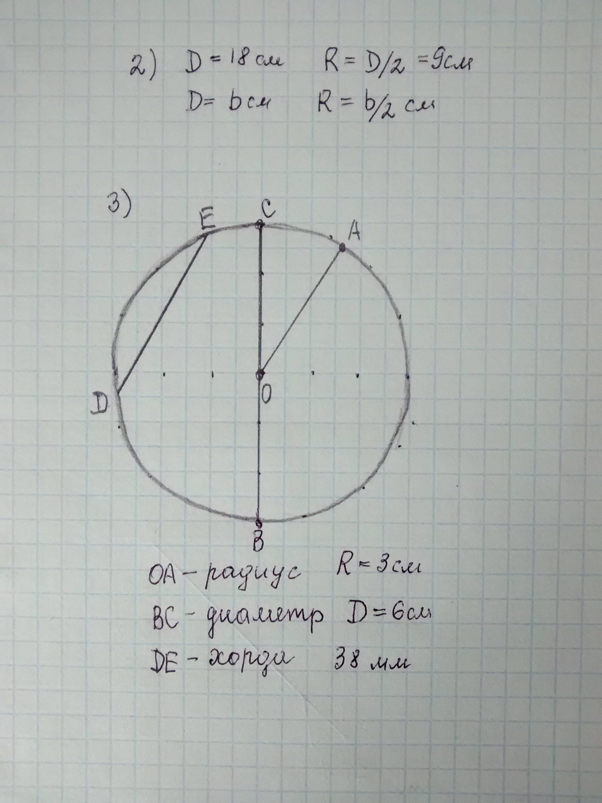 2) Знайдіть радіус кола, якщо його діаметр дорівнює: 1) 18 см; 2) b см.