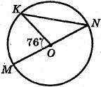 Поэтому ∠KNM = 0.5∠KOM = 0.5 · 76° = 38°