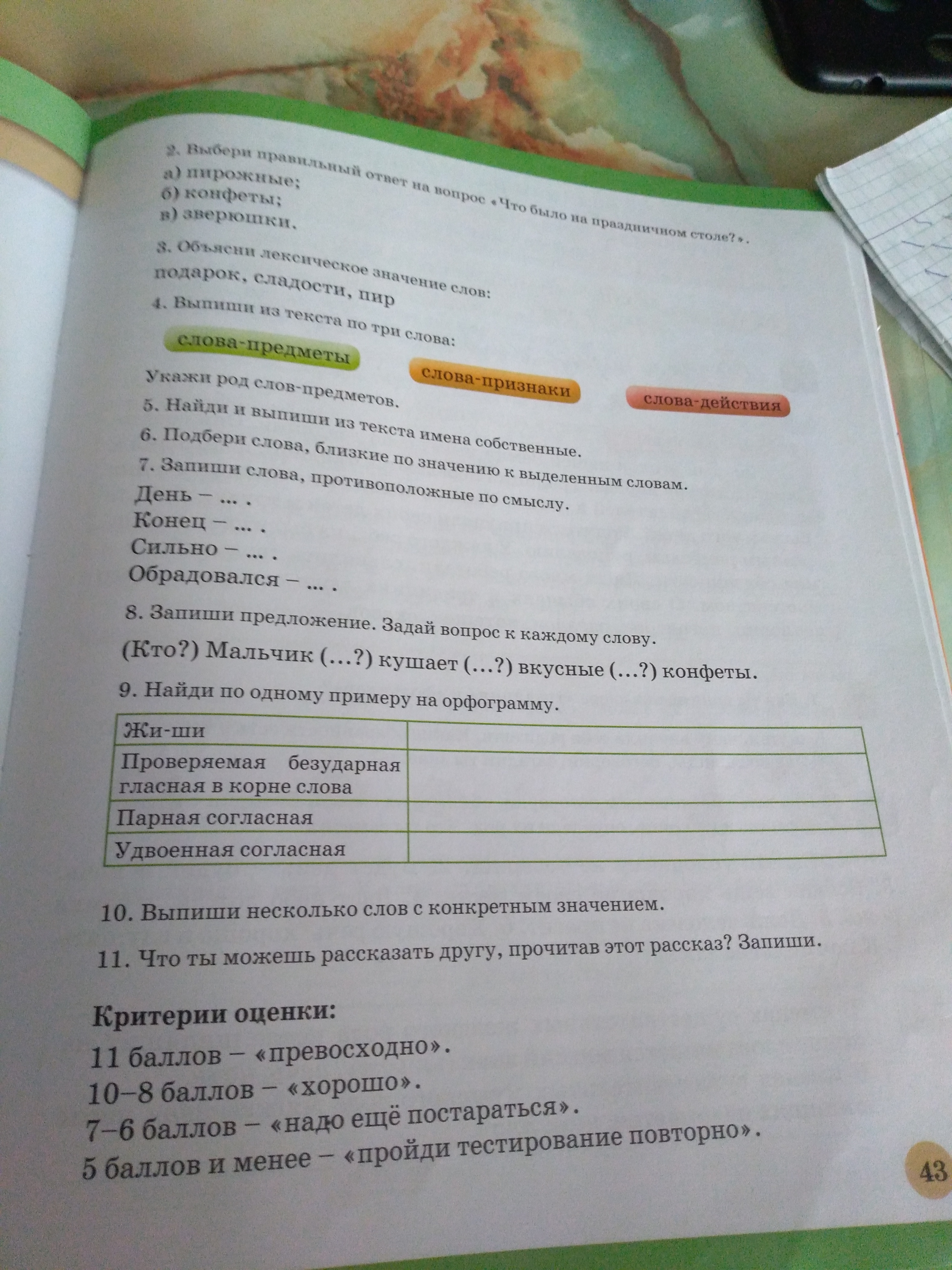 8(Кто?) Мальчик ( что делает?) кушает ( какие?) вкусные ( что?) конфеты.