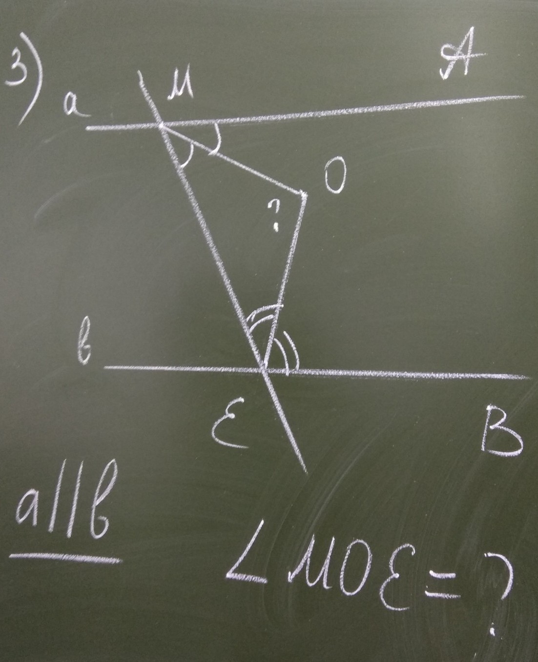 Если к точке О идут биссектрисы, то угол MOE 90 градусов