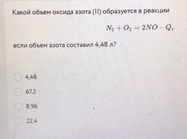 V(NO) = n × Vm = 0.4 моль × 22.4 лмоль = 8.96 л