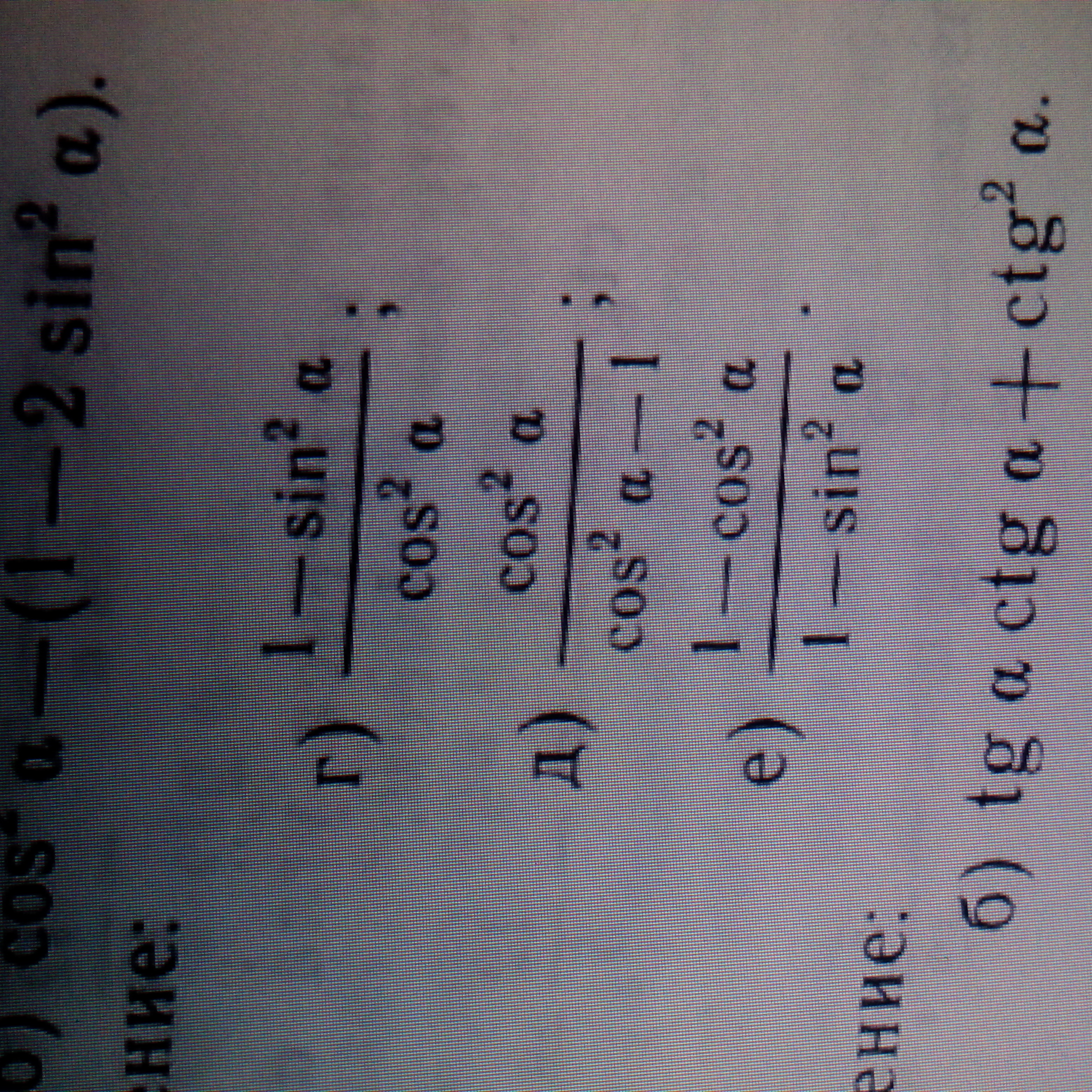 Запомни основное тригонометрическое тождество оно конечно не самое важное, но если ты не знаешь его, то считать, что либо будет очень сложно СУММА КВАДРАТОВ КОСИНУСА И СИНУСА ОТ ОДНОГО АРГУМЕНТА (УГЛА) ВСЕГДА РАВЕН 1 или