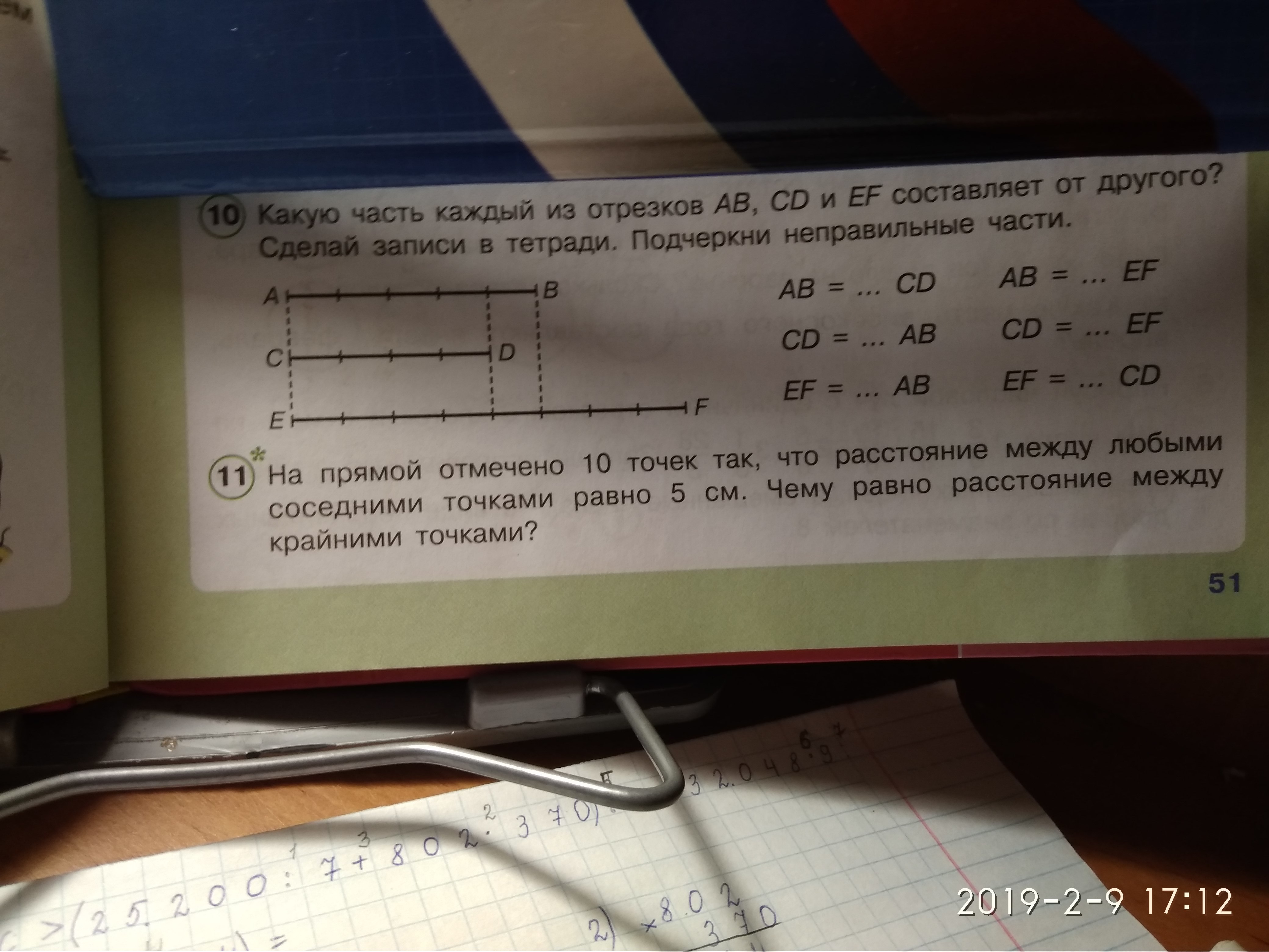 Какую часть из отрезков АВ,СD и EF составляет от другого? Подчеркни неправильные части