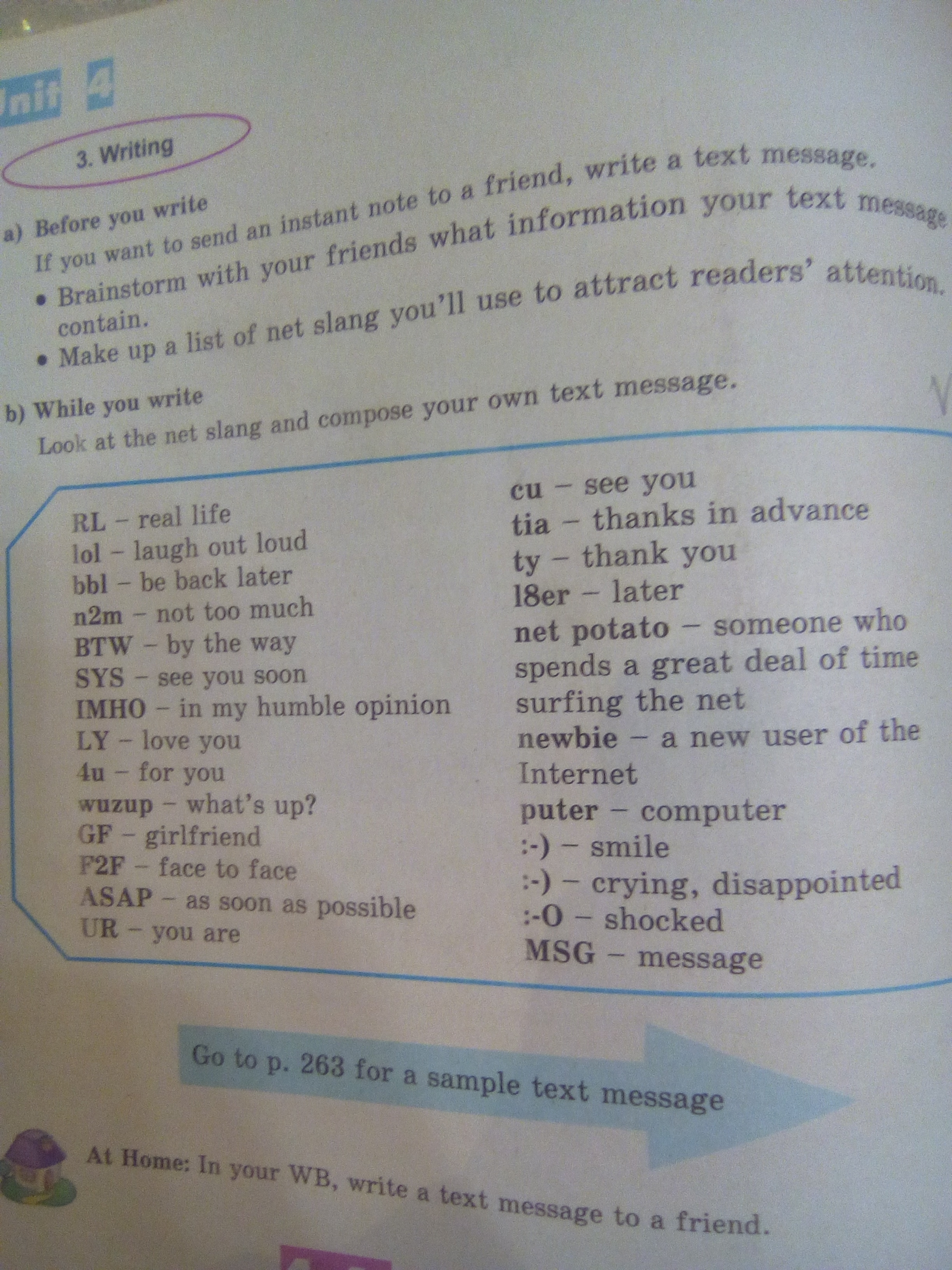 Ребятки, надо написать короткое письмо (2-4 реч) со словами ( интернет- сленгами) на картинке. Заранее спасибо)))