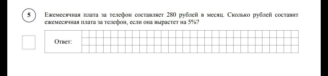 280+280*5%= 280+280:100*5= 280+14= 294 (руб) Ответ:294 рубля
