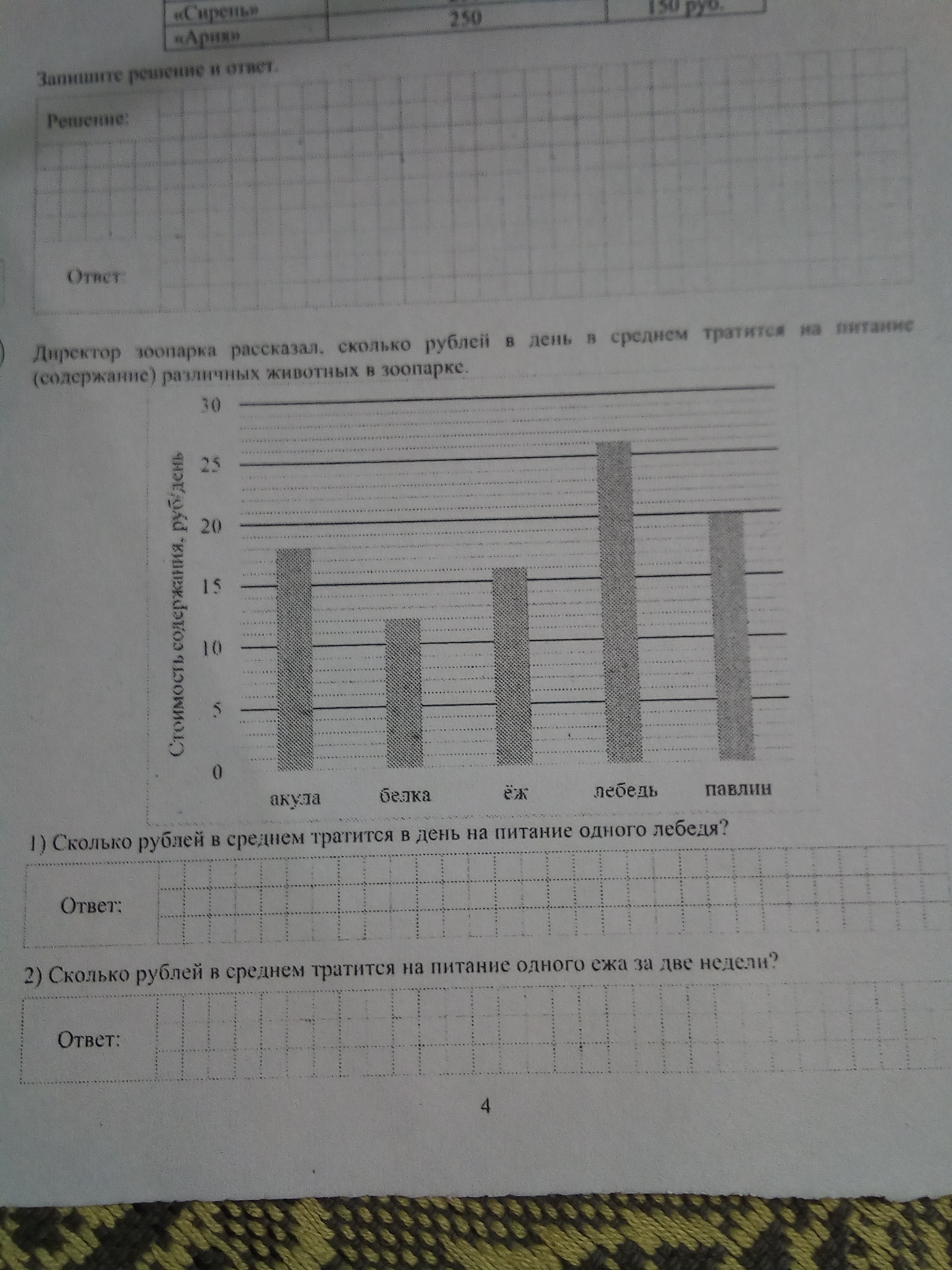 Ответ:26рублей на лебедя,224рубля на ежа за 2 недели