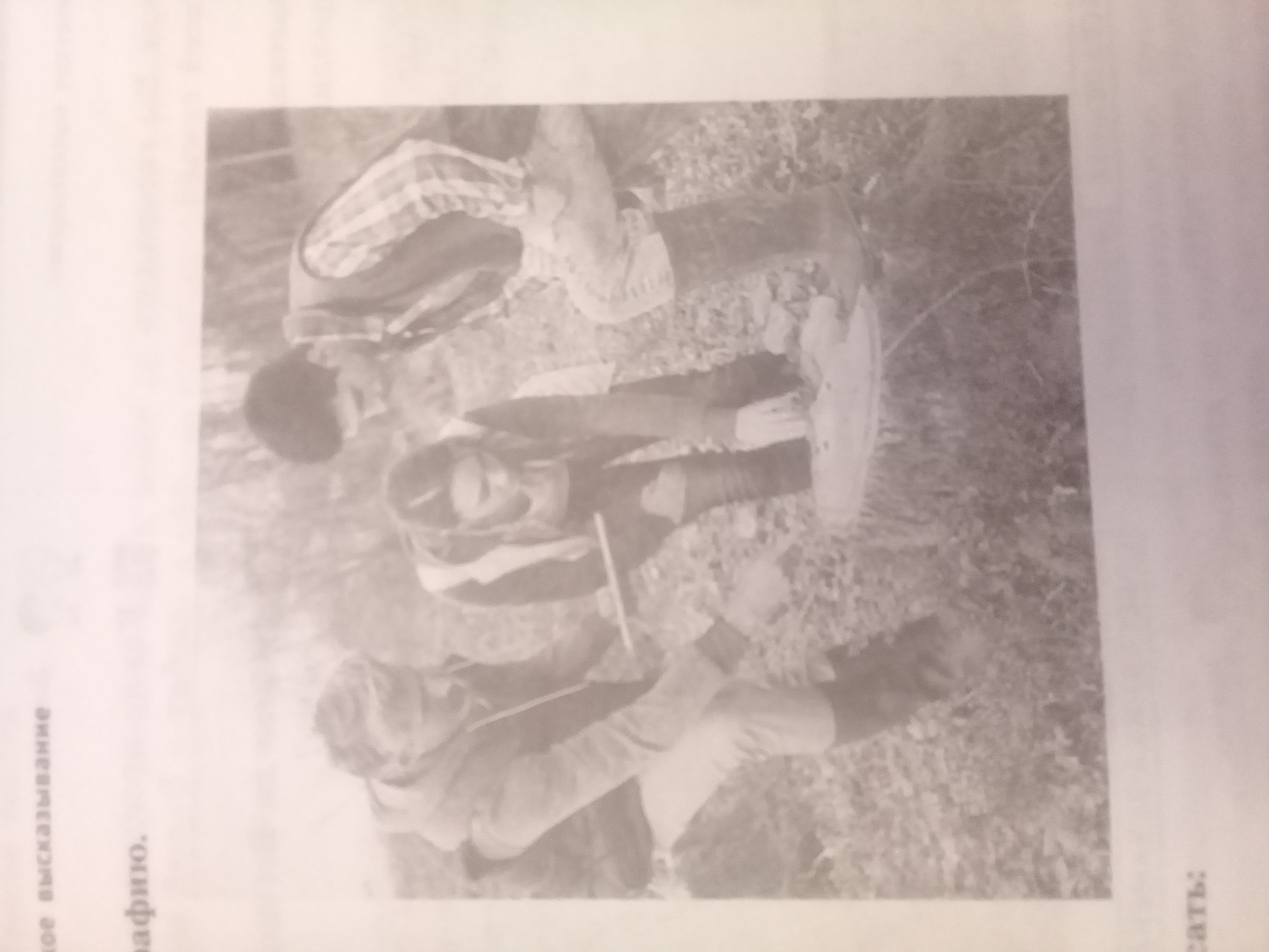 На предложенном рисунке мы можем заметить троих молодых людей, которые рассматривают сруб дерева. Двух парней и девушку. Они очень увлечены и, скорее всего, пытаются узнать возраст срубленного дерева по количеству колец на нем. Судя, по пейзажу на заднем плане, на картинке изображена ранняя осень или же весна. Ребята одеты в длинные резиновые сапоги и, мы можем догадываться, что они рассматривают сруб дерева не из любопытства, а для какого-нибудь проекта