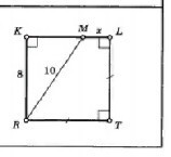 2. Фигура -квадрат, все стороны 8 ед, КМ=√36=6 ед, х=8-6=2 ед