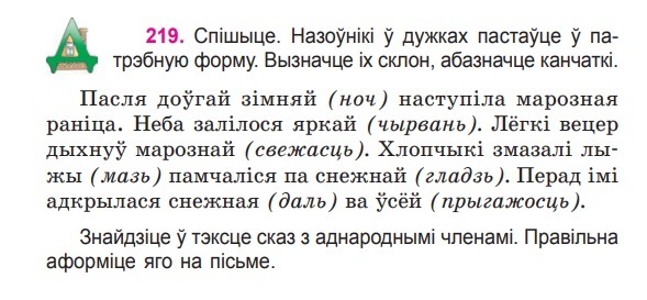 Пасля доўгай зімняй ночы наступіла марозная раніца. Неба злілося яркай чырванью. Лёгки вецер дыхнуў марознай свежасцю. Хлопчыкі змазалі лыжы мазью, памчаліся па снежнай гладзі. Перад імі адкрылася снежная далечыня ва ўсёй прыгажосці.