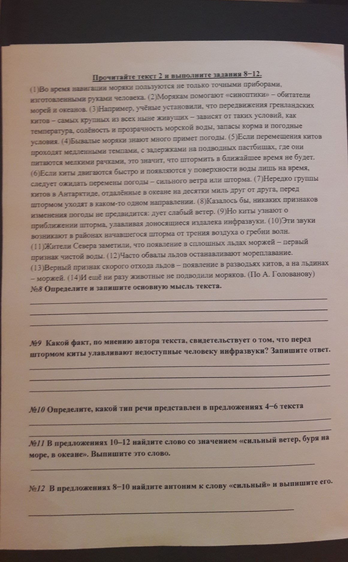 Это слово шторм в 10 предложении: Но киты узнают о приближении шторма ... (прим. Шторм - сильный ветер, непогода)