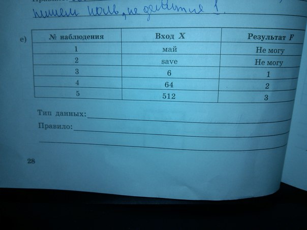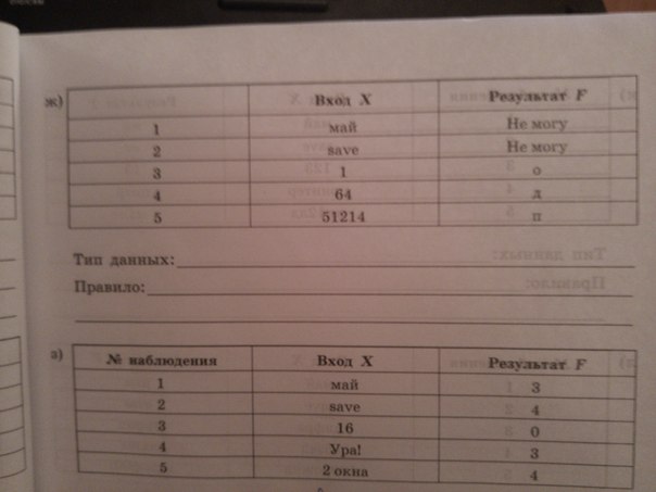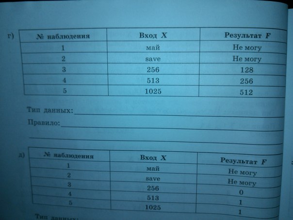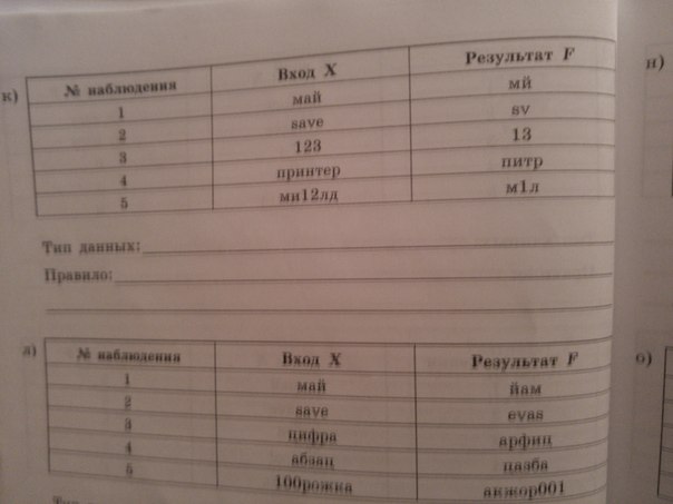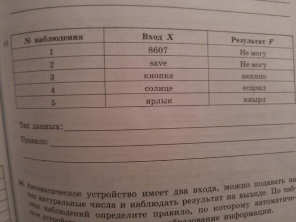 автоматическое устройство имеет один вход, можно подавать на него натуральные числа или последовательности символов и наблюдать результат на выходе. по таблице наблюдений определите тип входных данных и правило, по которому осуществляется их преобразование.
