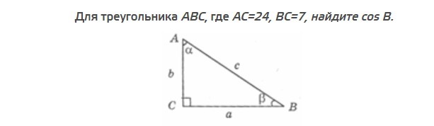 cosB=прил.катет/гипотенуза=7/25=0.28