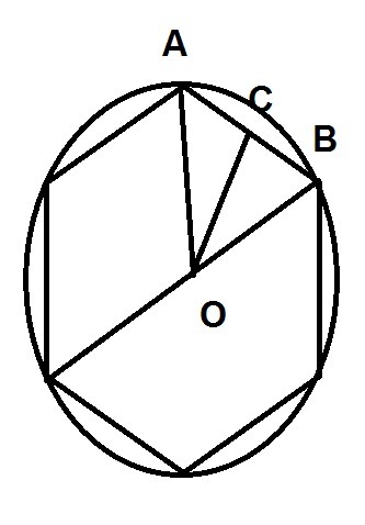 в окружность диаметром равным 12 см вписан правильный шестиугольник. Найдите апофему этого шестиугольника