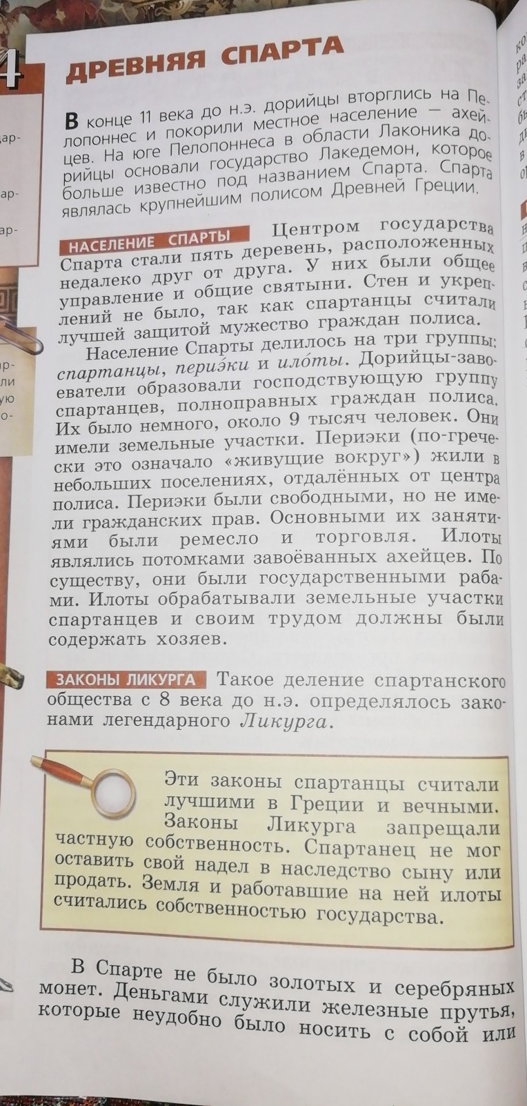 Законы Ликурга,которые запрещали частную собственность,спартанцы считали лучшими,земля не передавалась в наследство и считалась собственностью государства
