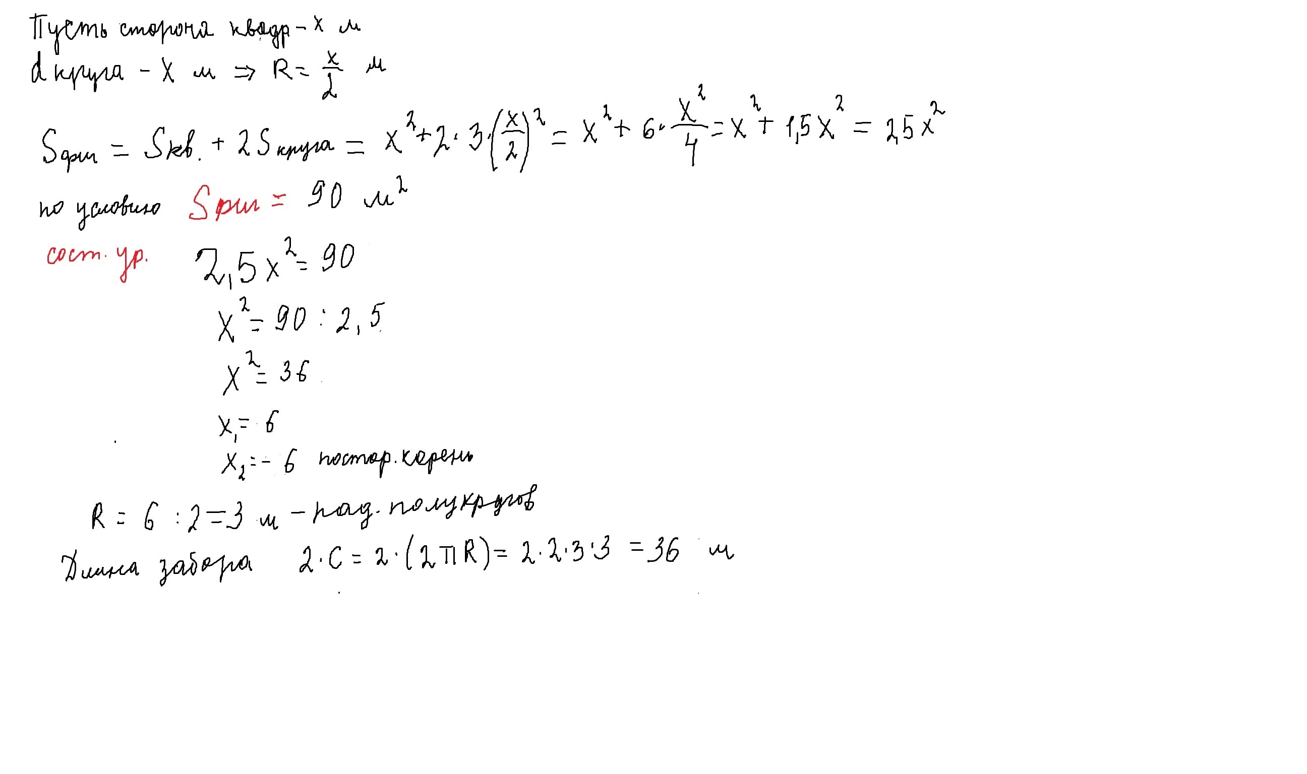 Ответ: сторона квадрата - 6м