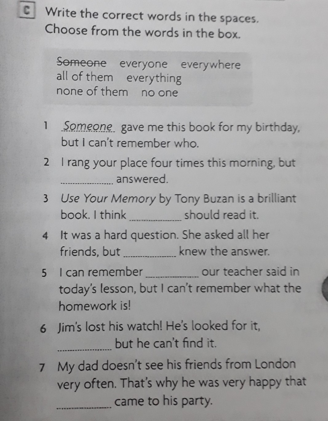 1 Someone gave me this book for my birthday, but i can't remember who.