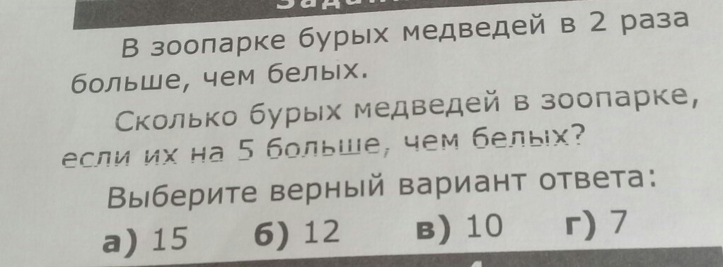 Пункт "в". Ибо Бурых на 5, и в 2 раза больше, значит бурых 10, а белых 5. 5*2=10.