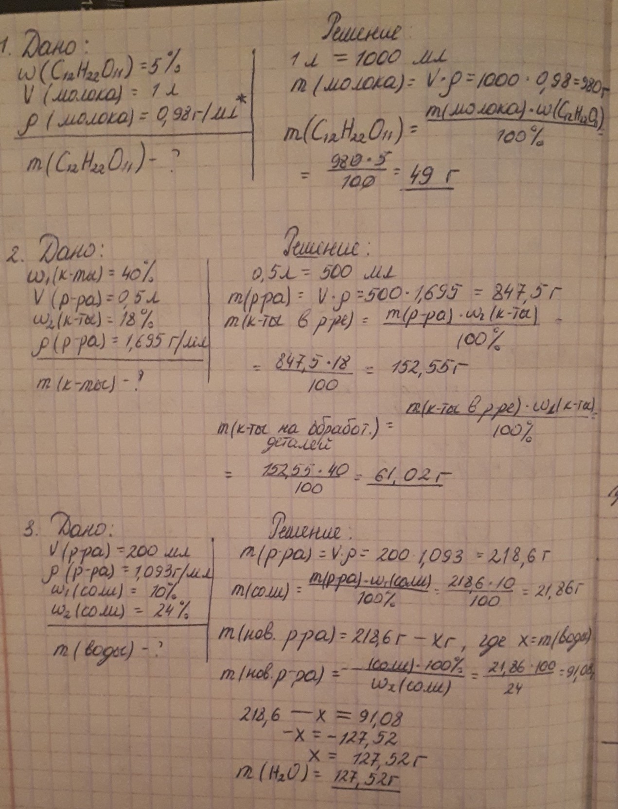 1.Лактоза-молочный сахар- её содержание в молоке – 5%. Определите массу лактозы в 1л молока, если его плотность составляет 0,98г/л.