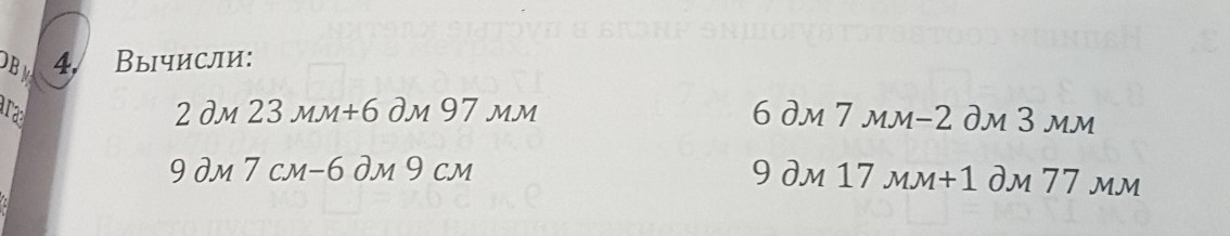 3.6дм 7мм-2дм 3мм=4дм 4мм