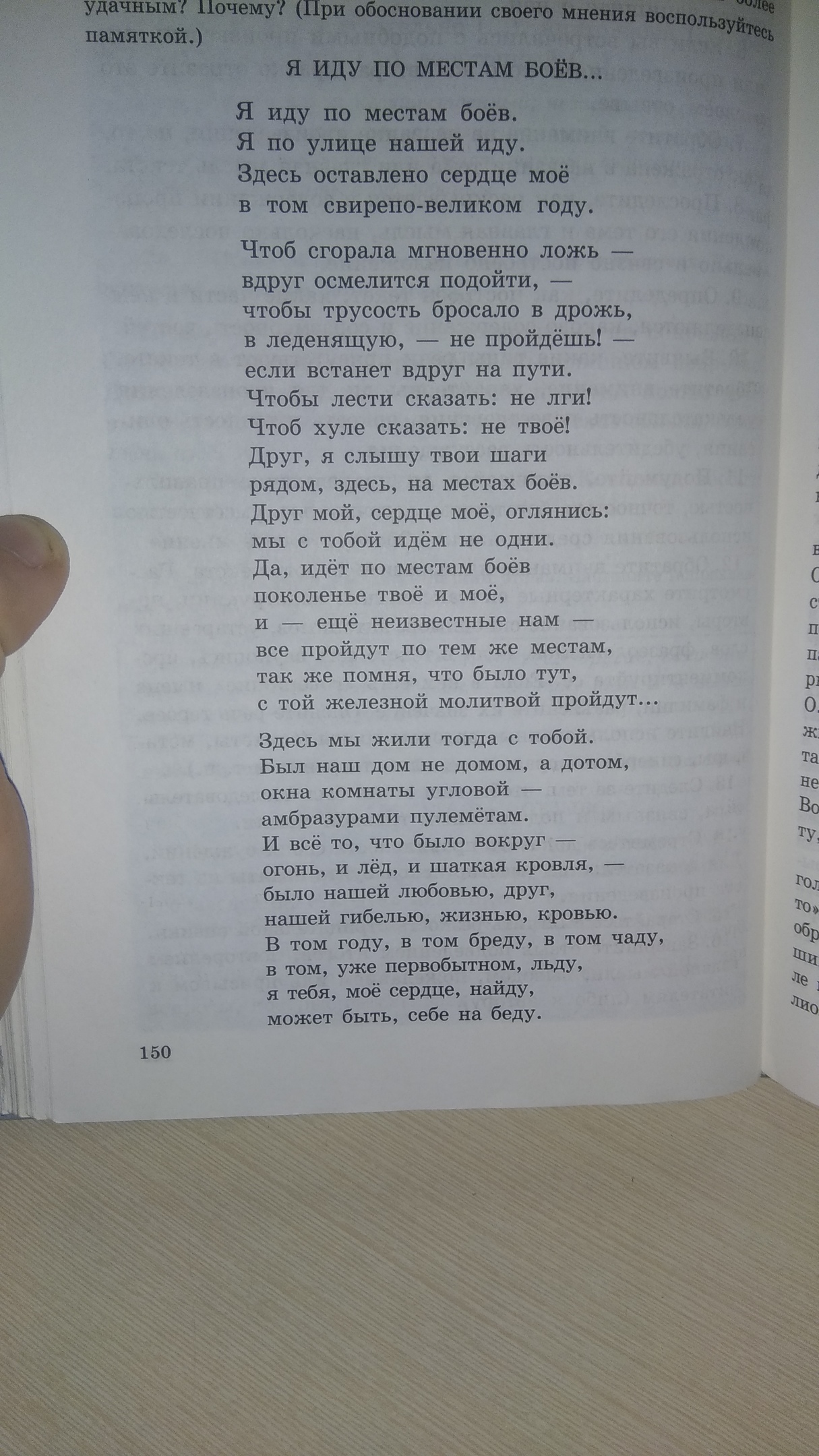Данное стихотворение является гранью между прошлым и настоящим. Оно заставляет оглянуться назад, окунуться в атмосферу блокадного Ленинграда. Родина тут представлена близкой и горячо любимой. О каждой войне можно говорить бесконечно, и здесь описано то, что, тревожило сердце автора по настоящему!