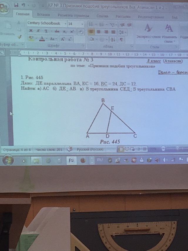 Поскольку ED║AB ΔABC подобен ΔEСD ⇒ АС/CD=CB/EC ⇒AC=24*12/16=18