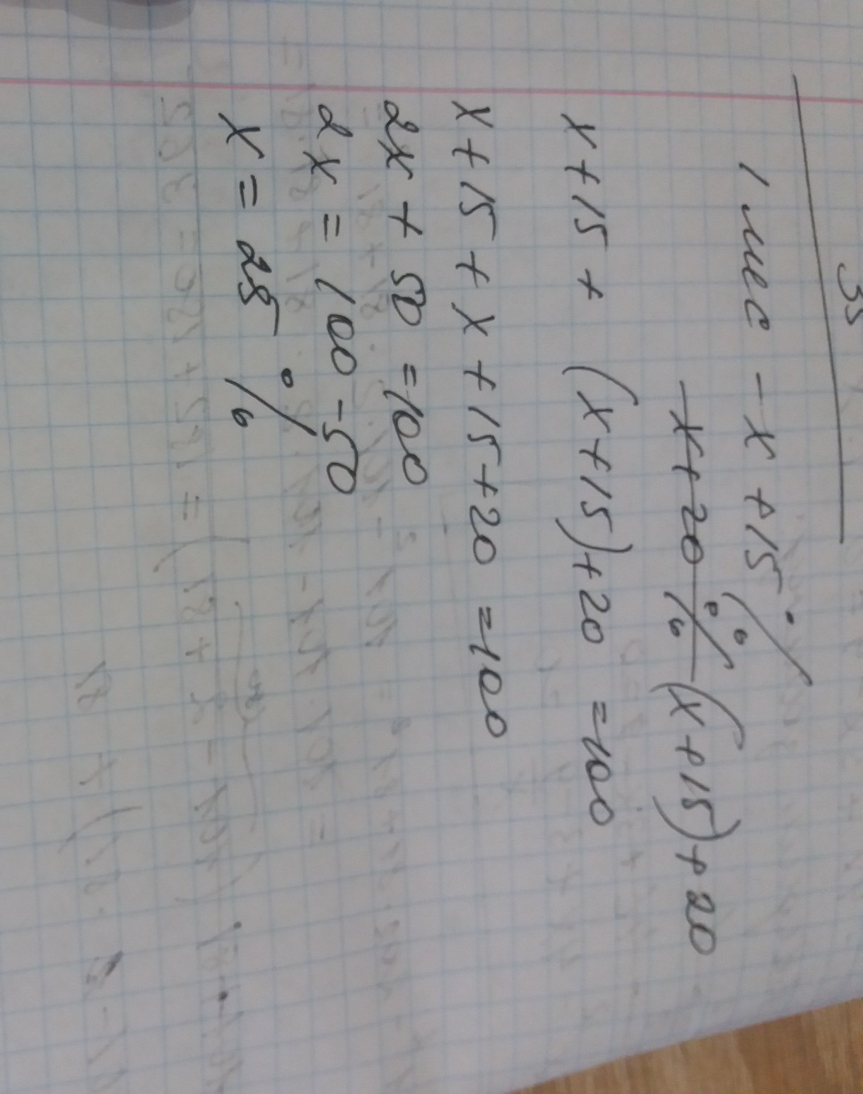 За перший місяць ціна на білети в кінотеатр підвищилась на 15%, а за другий на 20%. На скільки % ціна на білети підвищилась за два місяці?