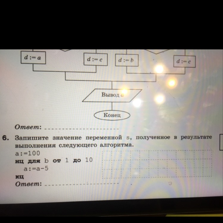 6 задание/ Запишите значение переменной s,полученное в результате выполнения следующего алгоритма...