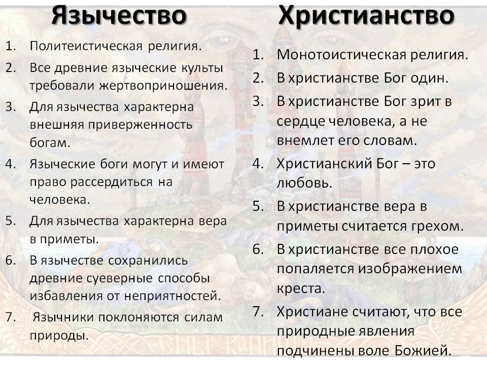 Вот таблица 6 класс история Сделать табличку "Отличия христианства от язычества".