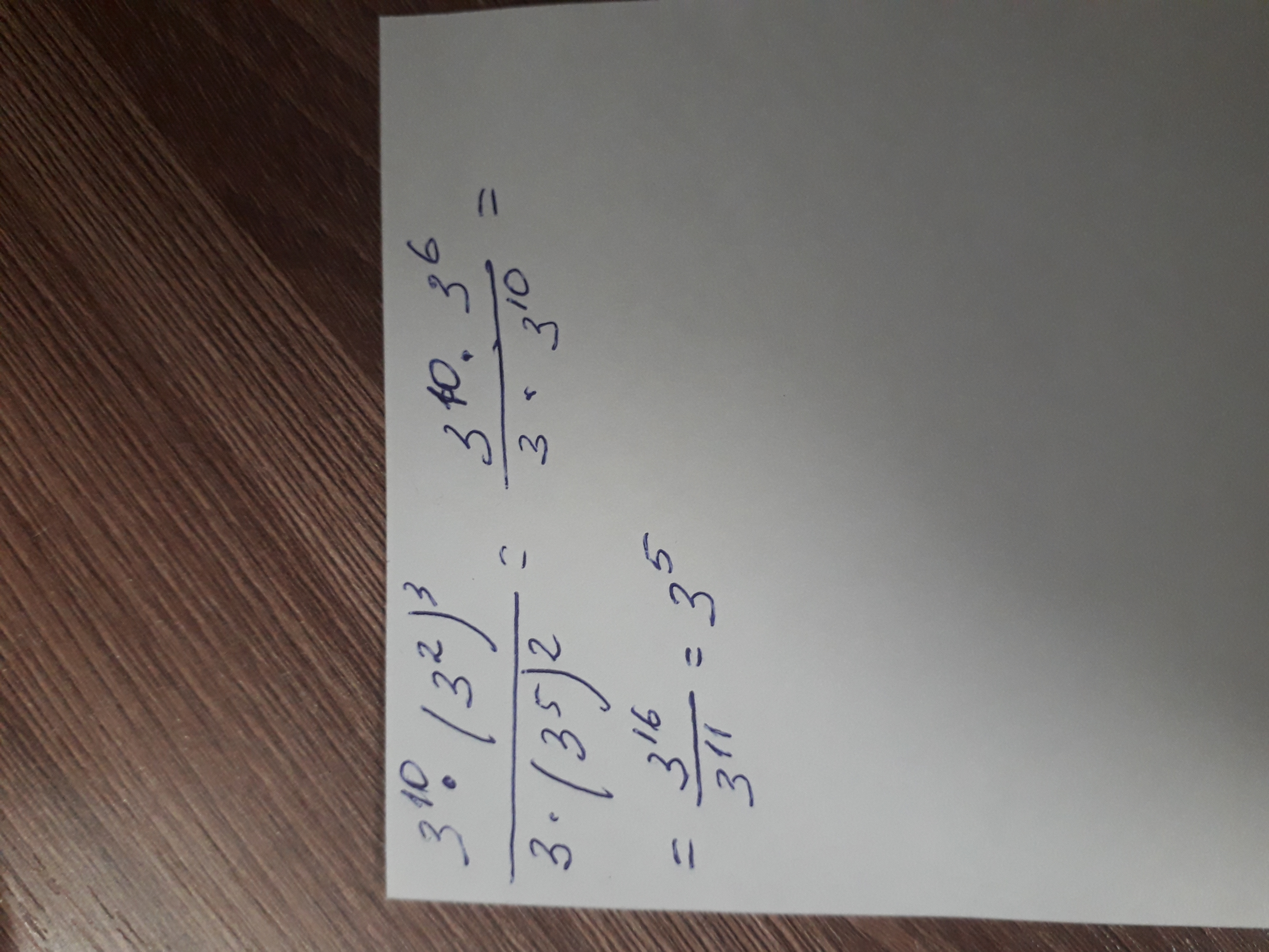 Вот ответ. Все очень просто. Нужно сначала умножить степени те что в скобках, потом сложить степени числителя и знаменателя. А потом когда деление при одинаковом основании степени вычитаются