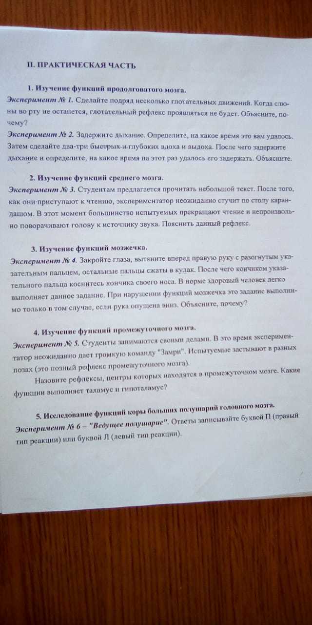 Опыт 3. Здесь рассматривается ориентировочный рефлекс. Его можно вызвать любым раздражителем — слуховым, зрительным, тактильным. Важно только, чтобы раздражитель был новый. Если повторить опыт с тем же раздражителем,то рефлекс уже не сработает,мозг уже ответил первый раз,и второй раз не реагирует.Но движение головы совершается в сторону нового раздражителя, независимо оттого, где этот раздражитель находится — впереди, сзади, справа, слева.