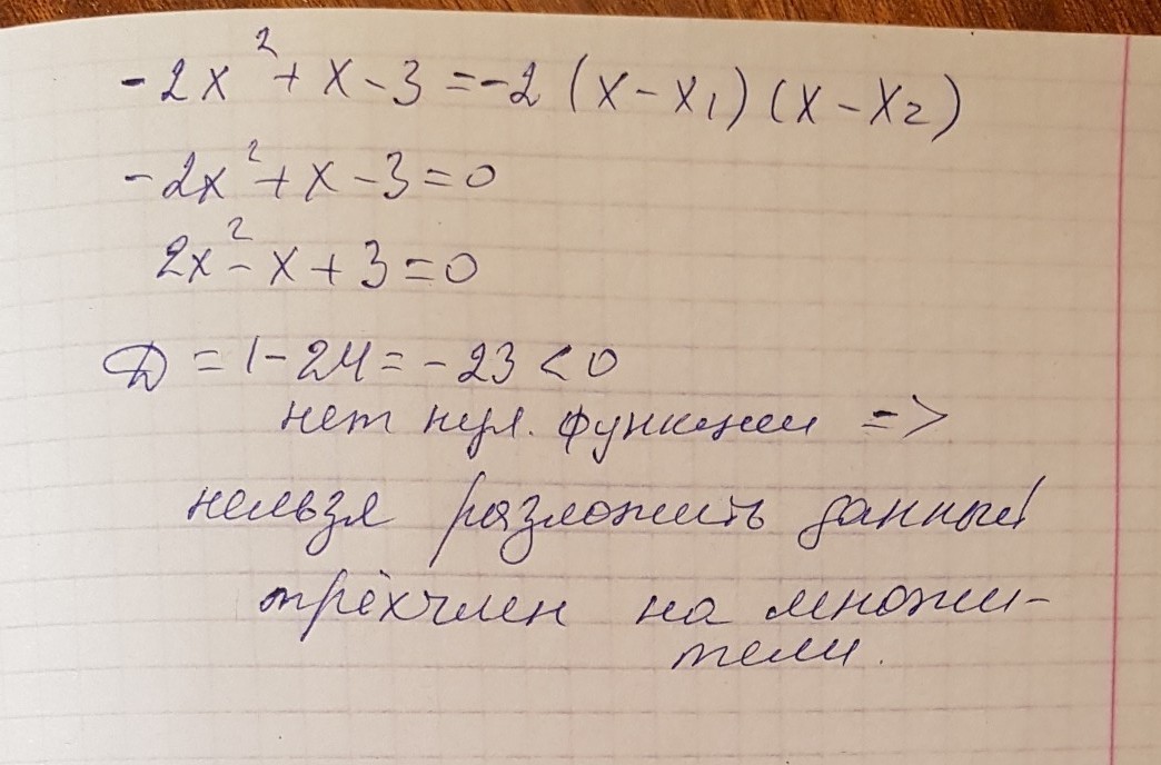 Разложите квадратный трехчлен на множители: -2x в квадрате +x-3