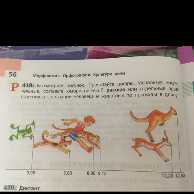 Как-то раз Витя решил сыграть в догонялки с животными. Он нашел кингуру, лягушку, собаку, лося и гепарда. Планы резко изменились. Звери начали спорить кто же дальше прыгнет? Они решили проверить и устроили сооевнования.