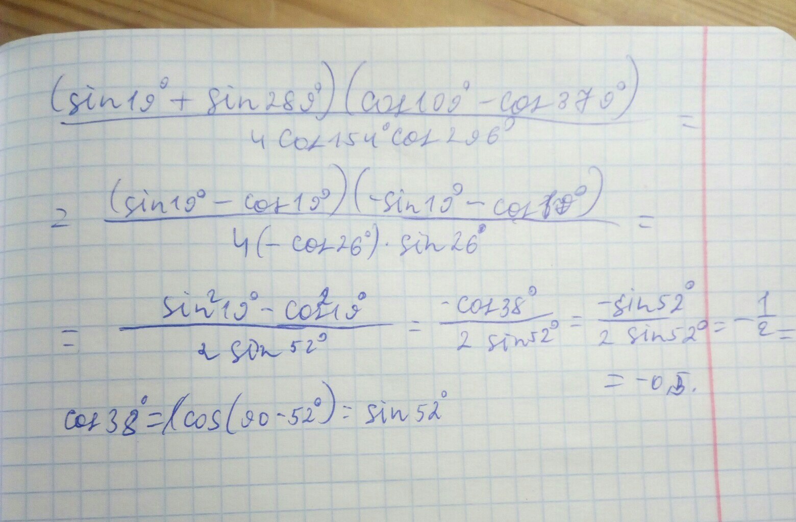 Я использовал формулу приведения, формулу разности квадратов и формулу синусов, косинусов двойного угла