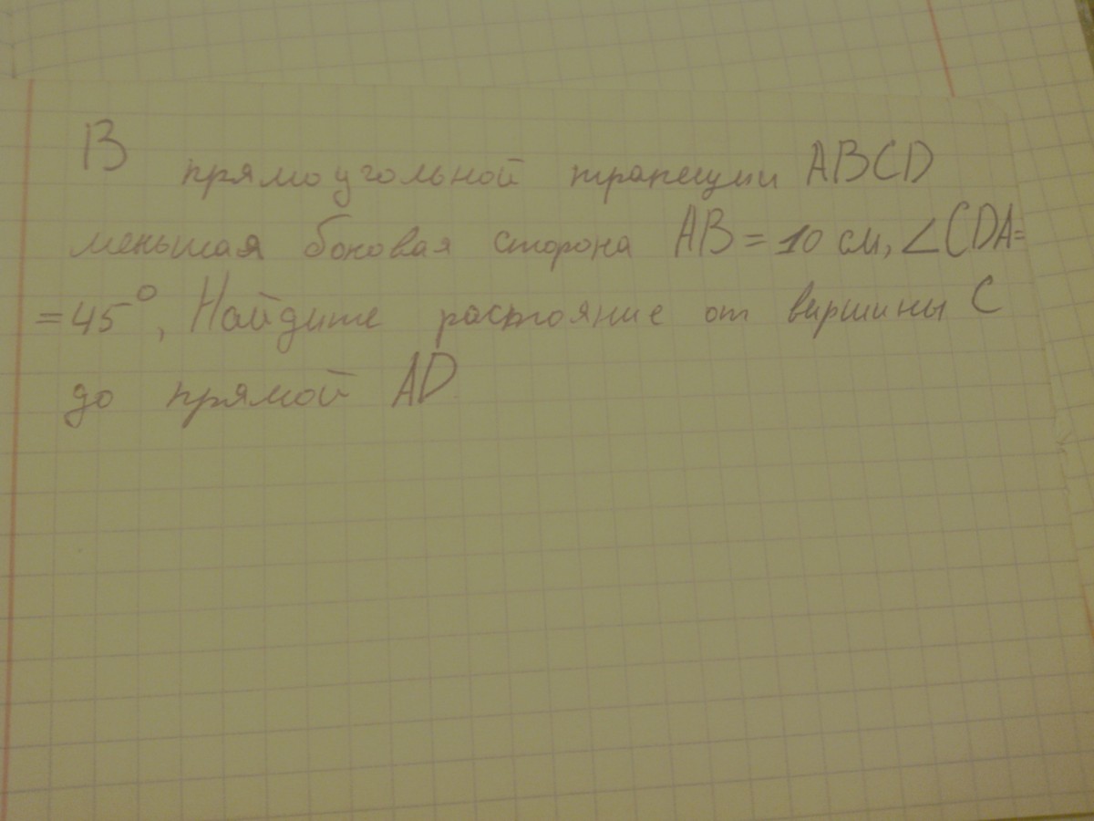 АВ= вершине С до прямой АD =10 см( т.к противоположные стороны прямоугольной трапеции равны.