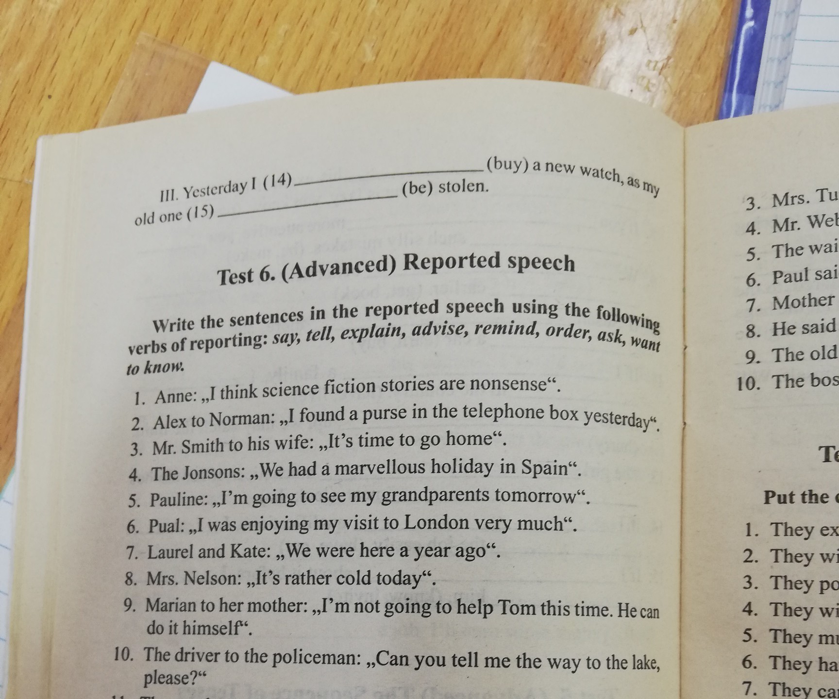 4. The Jonsons said that they had had a marvelous holiday in Spain.