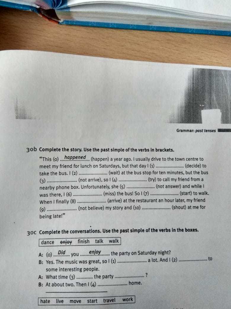 B 1)decided 2) waited 3) didn`t arrive 4) tried 5) didn`t answer 6) missed 7) started 8) arrived 9) didn`t believe 10) shouted