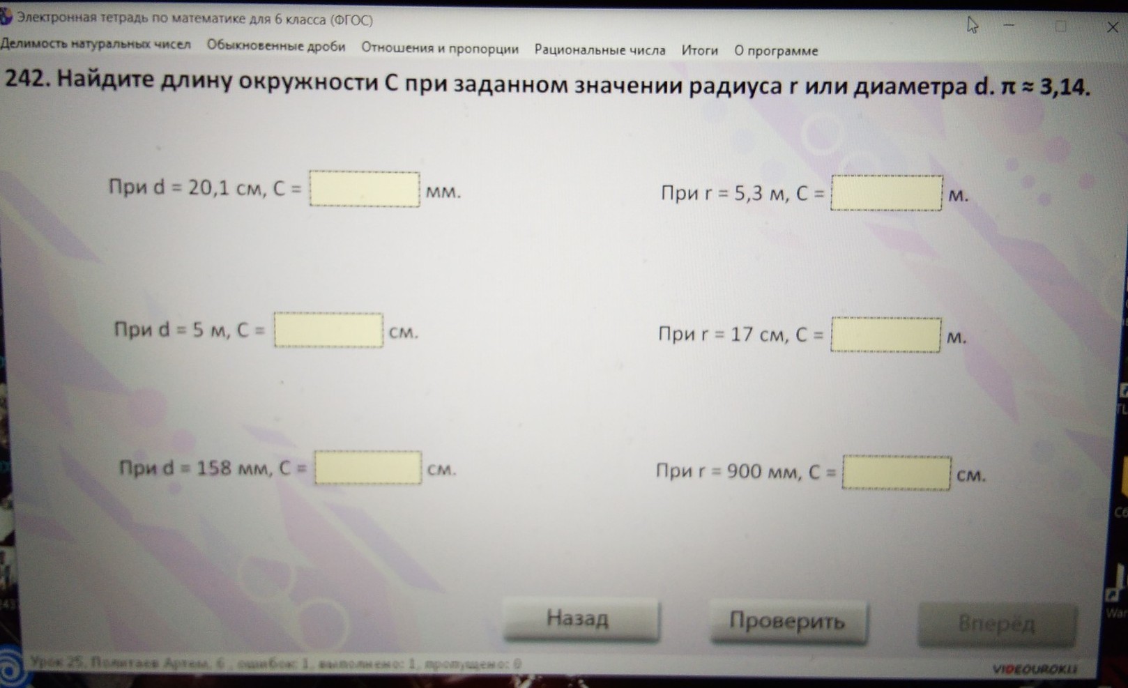C=п D 1)20,1*3,14=631,14(мм) 2)5*3,14= 15 70(см) 3)158*3,14=49,6 (см) С=2пr 1)5,3*2 *3,14=3,3 (м) 2)17*2*3,14=106,76 см=10,7 м 3)900*2*3,14=565,2 см