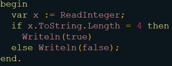 Напишите программу которая выдает на экран значение True или false в зависимости от того является ли введённое число X четырехзначным или нет