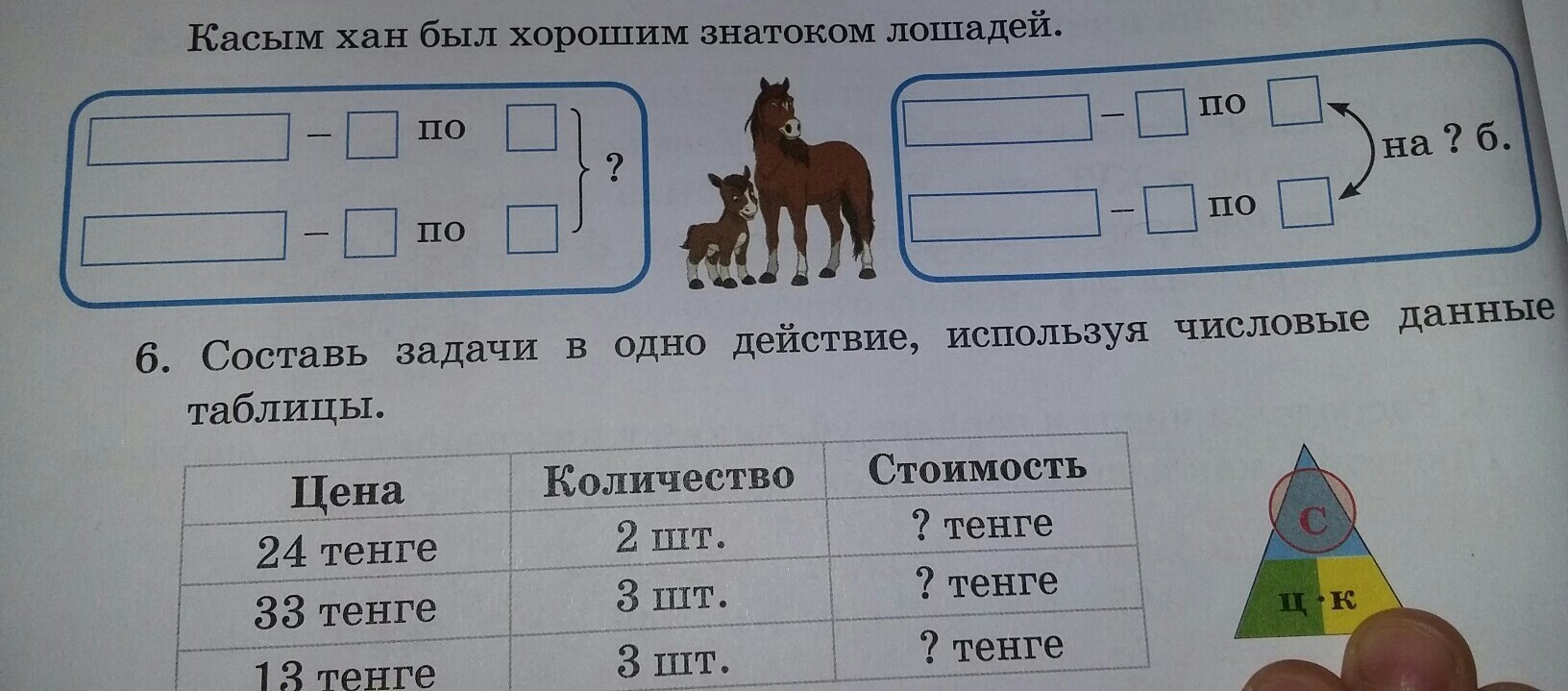 Помогите пожалуйста! Составь задачи в 3 действия, используя схемы. Используй слова:жеребята, лошади, табун.