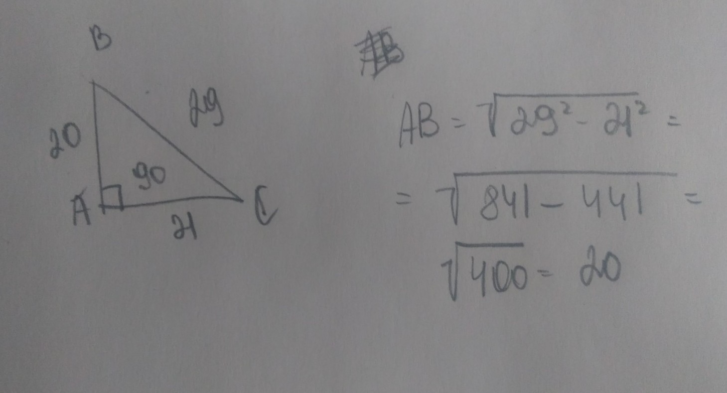 Найдите неизвестные стороны углы прямоугольного треугольника если катет этого треугольника равен 21 см и гипотенуза равна 29 см