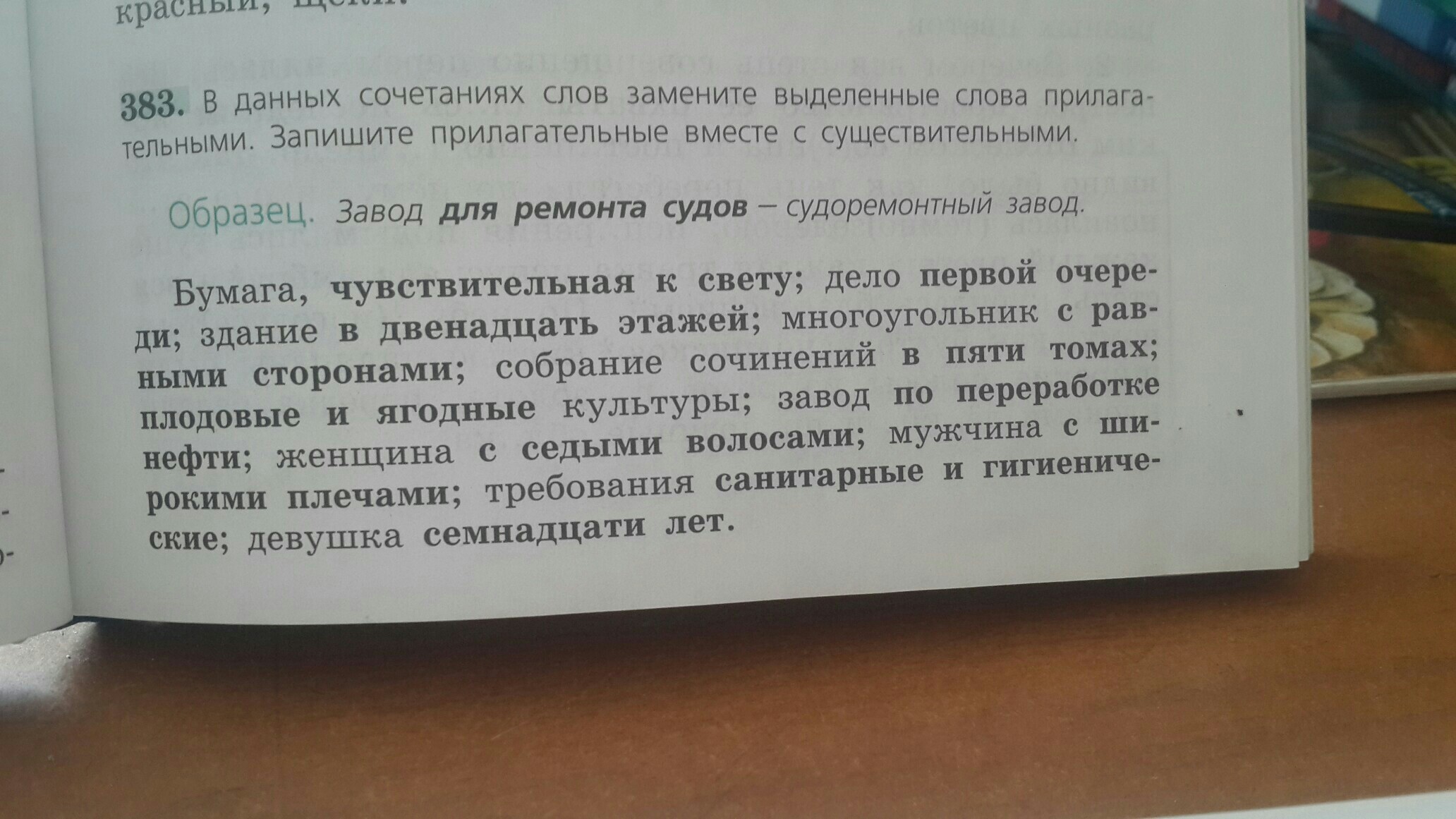 в данных сочетаниях слов замените выделенные слова прилагательными.запишите прилагательные вместе с существительными